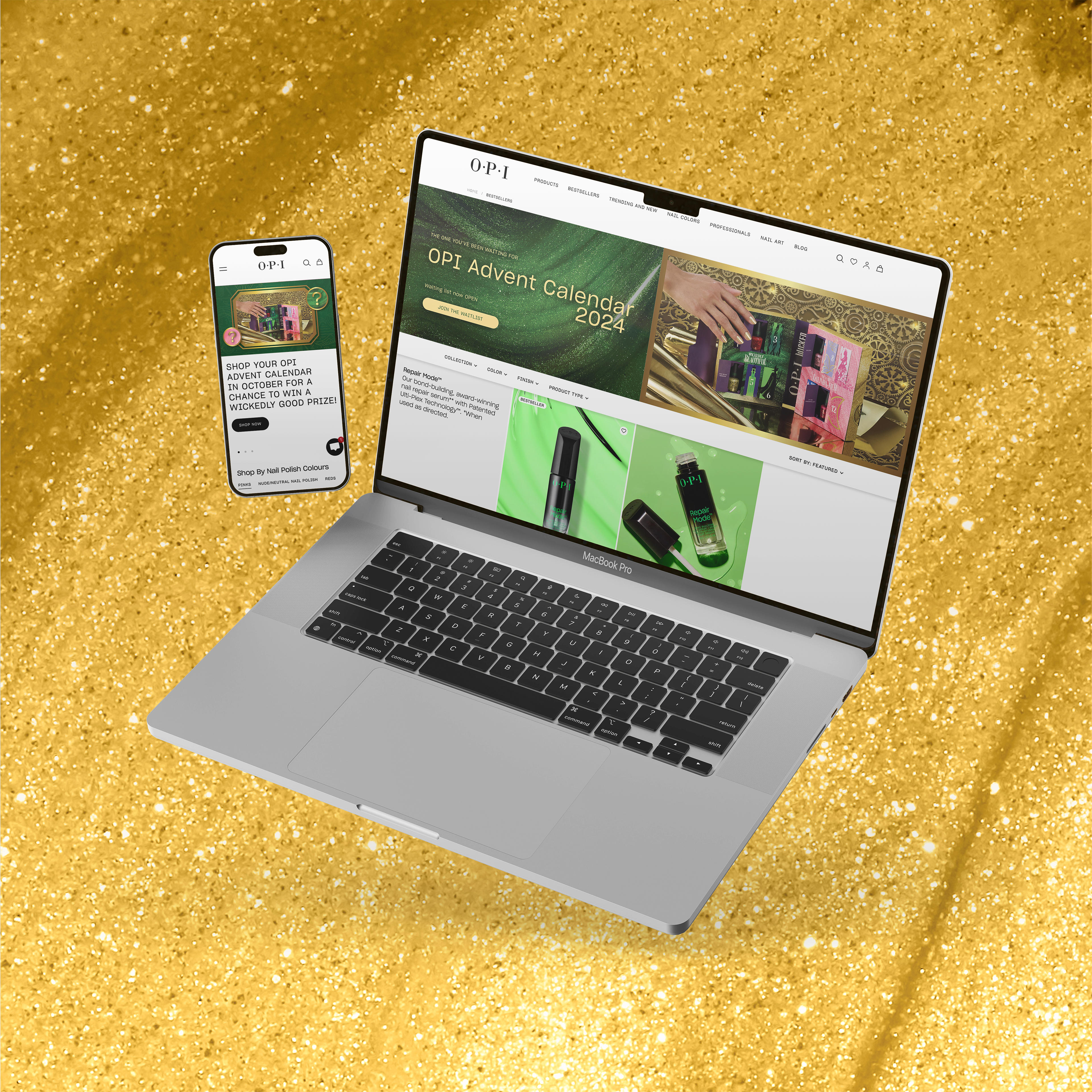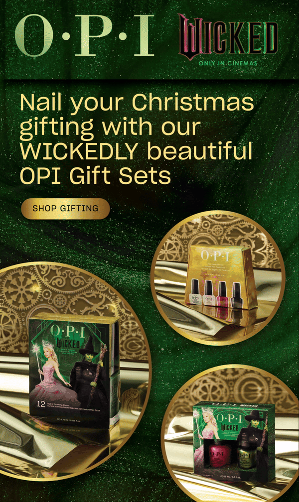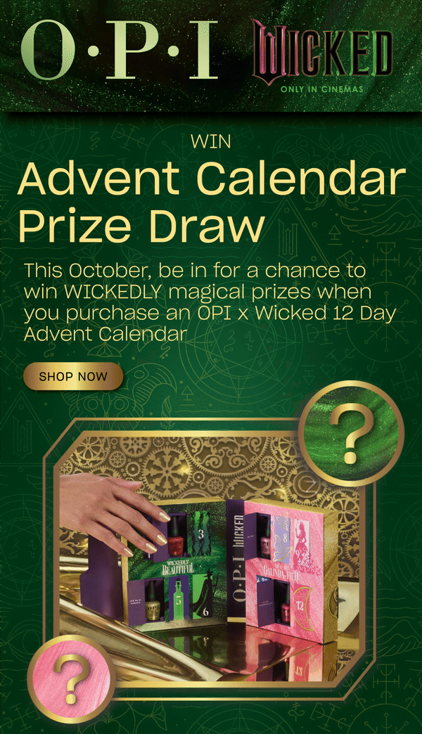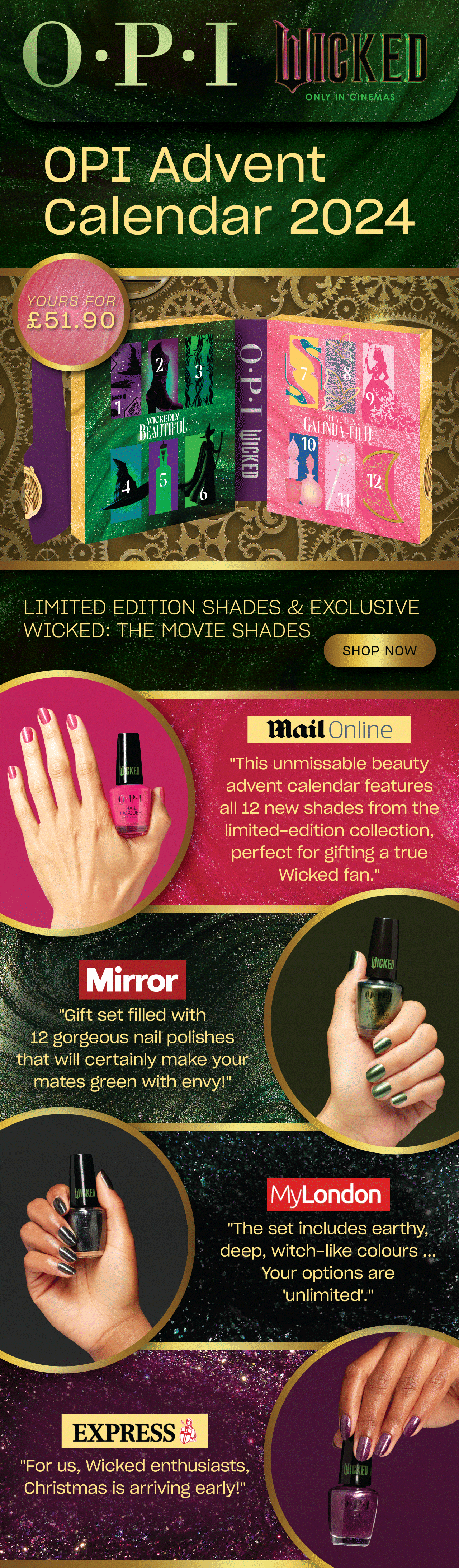 Email designs promoting the OPI x Wicked holiday collection and advent calendar